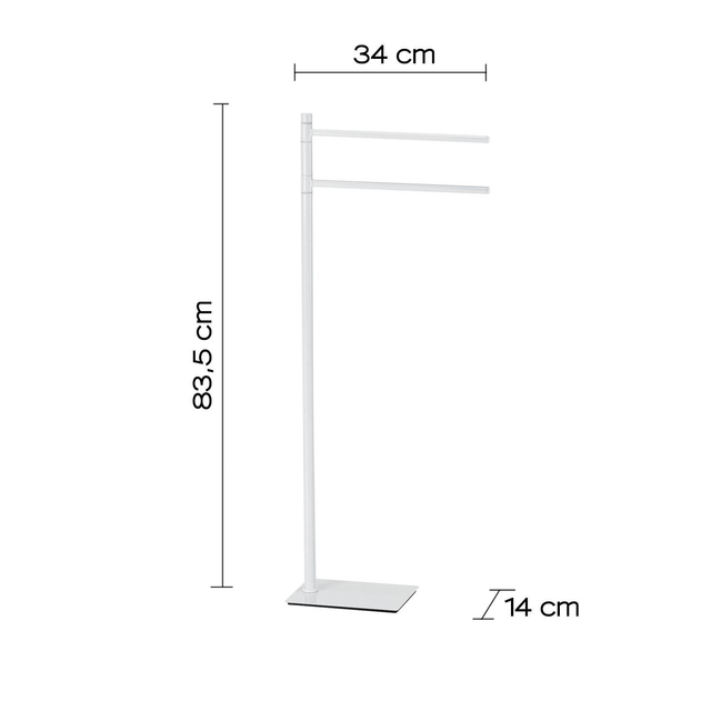 Piantana porta salviette 2 braccia , col. bianco, scopino con ciuffo in setole nero e tazza interna estraibile idonea ad una facile pulizia.